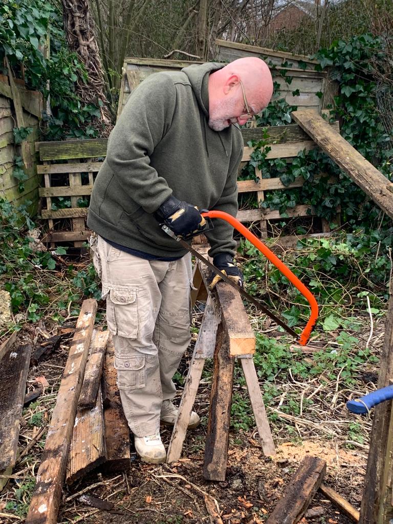 It was a cold but busy start to the year at the garden. We’ve had homemade soup (thanks Vee) and a fire to keep us warm, (that’s Steve sawing up wood for the brazier). We harvested salads, swedes, cavolo nero, spinach and chard to sell at the gate; and spent a lot of time filling the raised beds with unwanted soil from a neigbours garden. Cath and Audrey made access paths on one of the raised beds whiles others of us got cracking with bagging up leaves so they would rot down for leaf mould compost.