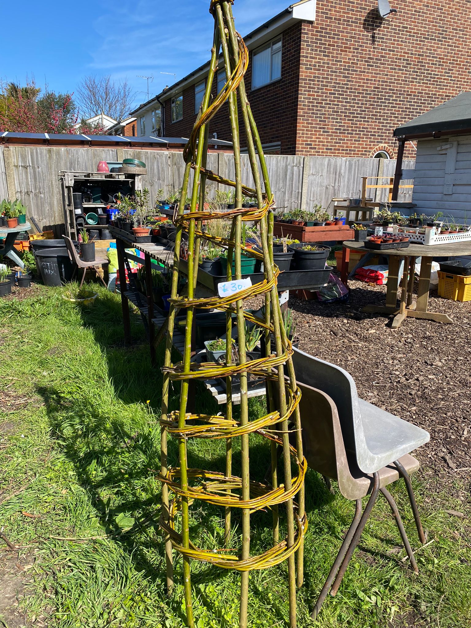 We had our first ever willow weaving workshops during the Easter holidays, courtesy of willow guru Nicole. We built obelisks with willow cut from the garden and volunteers’ gardens and learnt how to build these structures that are perfet for supporting sweetpeas and beans. We’re hoping to do more of this kind of activity over the coming months so if you’re interested in finding out more, email us at streamwalkcg@gmail.com. And if you’d like to buy an obelisk we have a few available for sale on Thursday morning so just pop in from 10am.