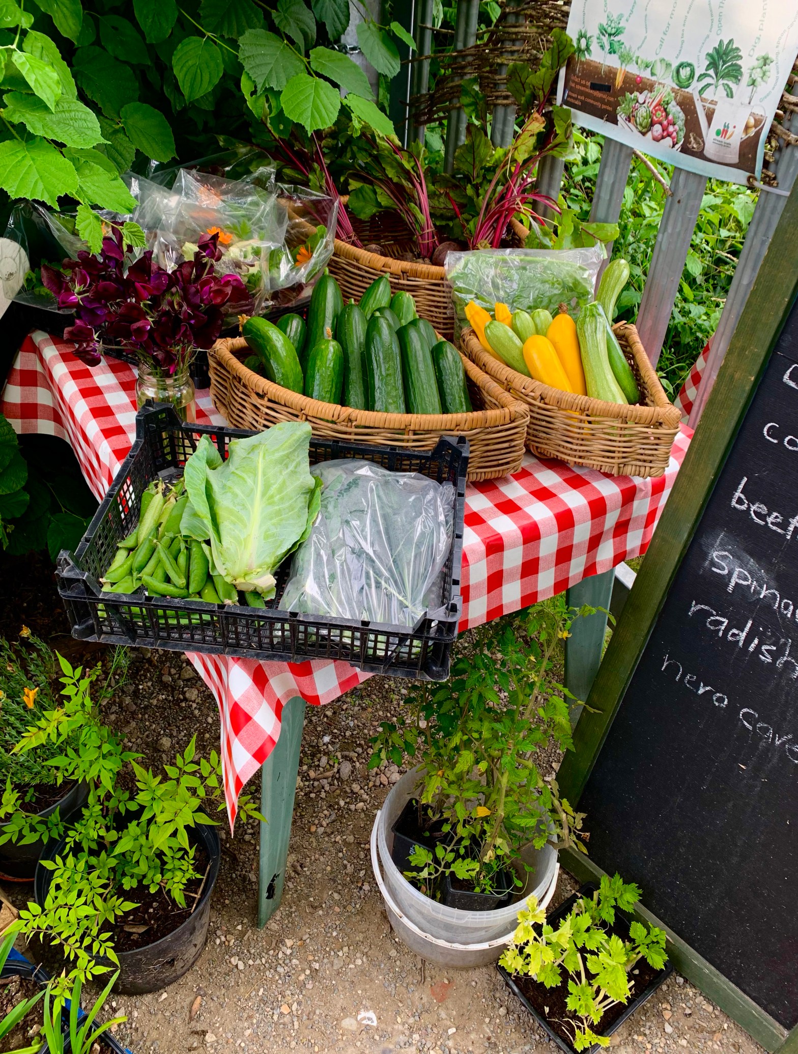 Freshly picked, organically grown fruit, vegetables, herbs and cut flowers; homemade jams and chutneys and willow crafts when available or made to order.