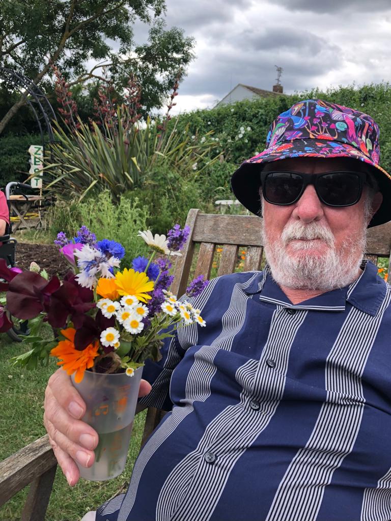 Exploring the sights, sounds and smells of the garden with Brightshadow, enabling people to live well with dementia.